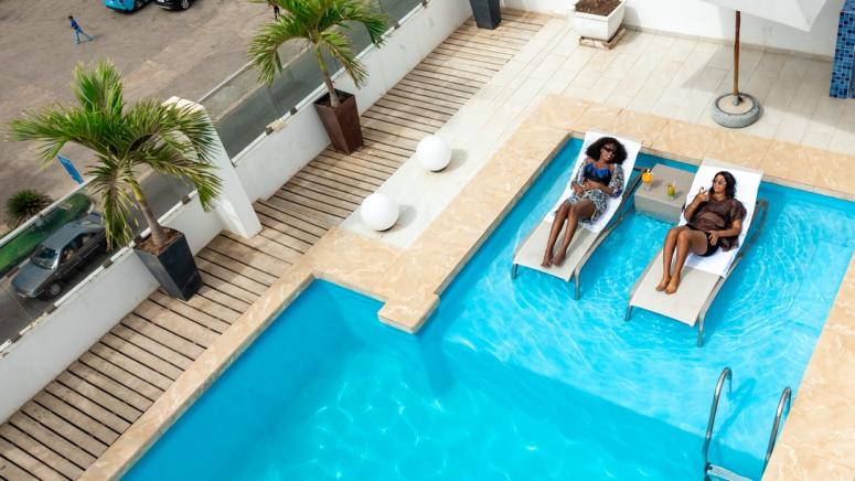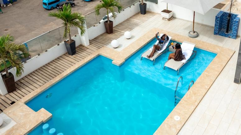 Installée au dessus de la terrasse profitez de notre piscine et d'une vue à 360° sur Saly.